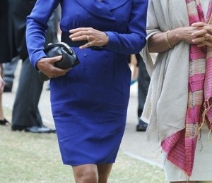 Kate Middleton a purtat aceasta rochie la prima conferinta de presa, relateaza dailymail.co.uk. Rochia albastra, stil camasa a fost purtata si de Carole Middleton cu doi ani in urma.