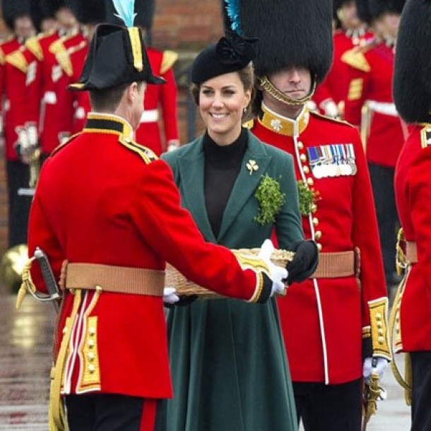 Fiind la ceremonia organizata in Hampshire, cu ocazia Sfantului Patrick, Catherine a avut o scurta discutie cu un soldat, marturisindu-i ca, in timp ce ea isi doreste un baietel, printul William ar prefera o fetita. De asemenea, ducesa a specificat ca inca nu s-au gandit la un nume pentru copil.