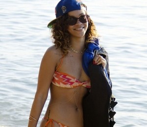 Foto! Rihanna, sexy intr-un costum minuscul in Barbados