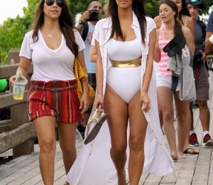 Kim Kardashian si sora ei, Kourtney, filmeaza pentru noul sezon al reality-show-ului in Miami si au fost surprinse relaxandu-se pe plaja. Bruneta a facut insa dintr-o simpla plimbare pe plaja o defilare de moda si a imbracat un costum de baie care i-a asigurat toata atentia celor din jur.