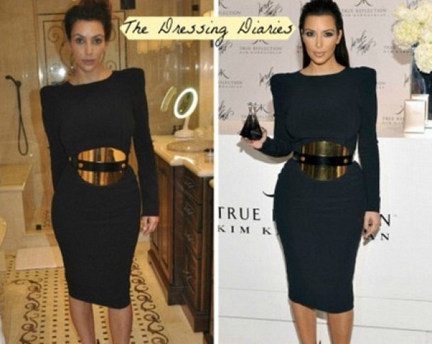 Oricat de greu ar parea, frumoasa bruneta nu ar reusi de una singura sa arate asa bine si drept dovada sta o fotografie pe care aceasta a postat-o pe blogul personal. Kim apare in imagine purtand o creatie Tom Ford, o rochie neagra care i-a adus multe aprecieri. Comparand fotografia in care aceasta a imbracat singura rochia si modul in care au sfatuit-o stilistii sa o poarte pentru evenimentul la care a luat parte, este clar ca singura nu ar fi reusit sa impresioneze.