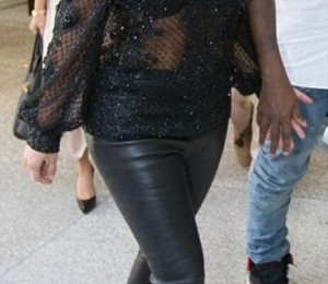 Vedeta in varsta de 32 de ani a decis sa poarte o pereche de pantaloni din piele si o camasa neagra din dantela, transparenta, care ii lasa sutienul la vedere.