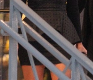 Kim Kardashian a iesit din hotelul in care sta cazata cu mama ei purtand un outfit all black compus dintr-un top peplum si o fusta. Numai ca Kim nu s-a multumit de data aceasta doar sa isi puna in evidenta posteriorul, ci si o alta parte a corpului. Fusta pentru care a optat Kim era nu doar mulata, ci si foarte scurta, lasandu-i la vedere picioarele perfect tonifiate.