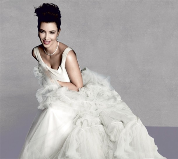 Recent, Kim Kardashian a pozat intr-o rochie de mireasa pentru editia din luna noiembrie a publicatiei Tatler.