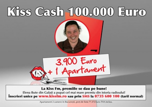 Kiss Cash continua! Inscrieri unice prin SMS la 0735 600 100 (tarif normal) sau, gratuit, pe kissfm.ro.