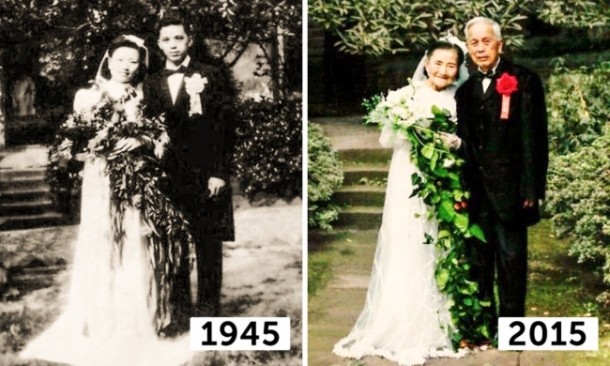 "Când vom împlini 100 de ani, vom veni din nou aici, nu-i aşa?", l-a întrebat Wang pe soţul ei imediat după ceremonie.