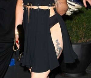 Astfel, cantareata in varsta de 26 de ani a transformat o simpla plimbare prin oras intr-un adevarat spectacol. Aceasta a purtat o rochie neagra ce parea cat se poate de normala de la gat pana la abdomen, de unde rochia venea crapata in parti si cele doua fasii de material care veneau in fata si in spate erau prinse cu ace de siguranta.