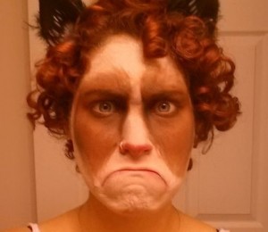 2. Grumpy Cat - daca nu vrei sa risti sa fii costumata la fel ca inca 10 persoane de la petrecere, renunta la clasica pisica si costumeaza-te in grumpy cat! Ai nevoie de: un ondulator, urechi de pisica (pe care te-am invatat deja cum sa le faci), fard maro, fard alb, o bluza alba.