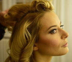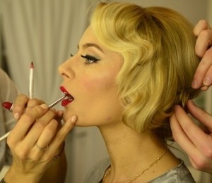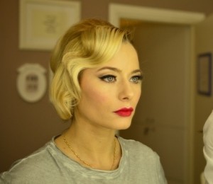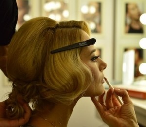 Pentru marele eveniment, aceasta a optat pentru o coafura cu bucle si un machiaj care punea accentul pe buze datorita rujului rosu, dand astfel aparitiei ei o nota usor retro.