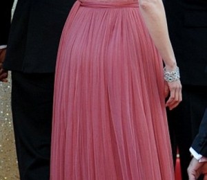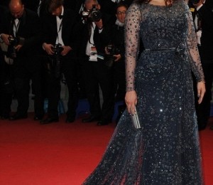 Actrita in varsta de 38 ani a optat pentru o rochie care sa ii ascunda greutatea, evidentiind o silueta superba de clepsidra. Creatia semnata Elie Saab era de culoare albastra, cu manecile lungi si decorata cu cristale Swarovski.