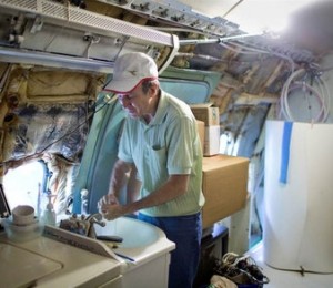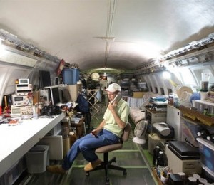 Barbatul este inginer de meserie si a vrut neaparat sa aiba o casa inedita. Asadar, el a achizitionat un Boeing 727 si l-a amenajat astfel incat sa poata trai linistit in el. Boeing 727 a fost cel mai popular avion de pasageri al anilor ‘80.
