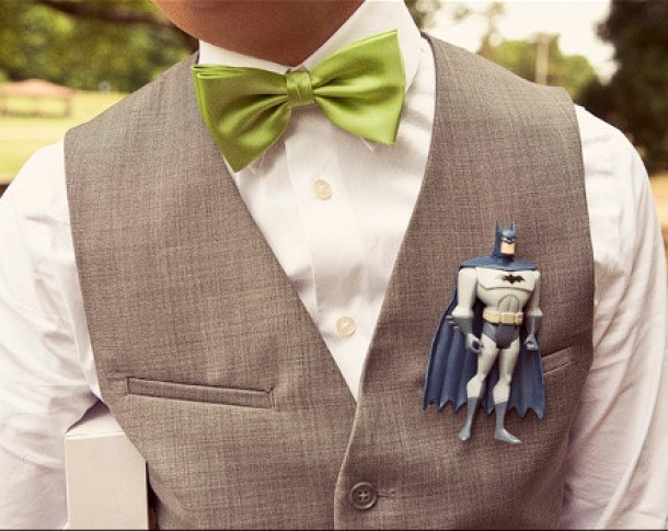 In plus, nu doar ca va iesi in evidenta butoniera lui, ci se va integra perfect in tema nuntii. Asa ca poti renunta fara regrete la floarea din pieptul sau (indiferent ca este trandafir, orhidee sau lalea) si sa ii oferi viitorului mire o butoniera pe masura masculinitatii sale: butoniera handmade realizata dintr-un cartus sau dintr-un glont, butoniera facuta dintr-o bujie, butoniera cu super-eroul Batman, butoniera cu soldati din filmul Star Wars; iar daca este pasionat de IT, ii poti confectiona o butoniera dintr-o veche placa de baza sau din cateva circuite mai vechi. Trebuie doar sa iti lasi creativitatea sa zburde.