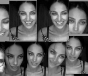 Iubita lui Gerard Butler apare intr-un colaj de instantanee complet nemachiata, cu parul prins in coada. Fotografia pare sa fie facuta cu camera web si Madalina poate fi admirata razand, dar si afisand o stare melancolica.