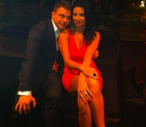 Denise apare in imagine intr-o rochie rosie, mulata, cu un decolteu mai mult decat generos. Langa ea este si un barbat care pare mai mult decat incantat sa ii fie aproape.