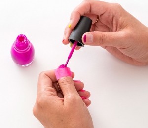 Ai nevoie de: lac pentru unghii, oje colorate, scotch.