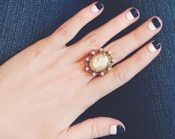 Ai nevoie de: lac de unghii, oja bej si oja bleumarin.