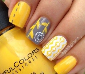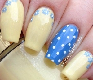 Dacă eşti ceva mai îndrăzneaţă, poţi combina o nuanţă stridentă de galben cu sclipici auriu sau, de ce nu, chiar argintiu. O combinaţie reuşită este şi cea de galben şi albastru, fie ele în nuanţe puternice, fie în variantele pastelate.