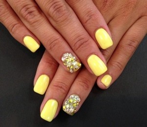 Manichiura în degrade, care trece de la o nuanţă intensă de galben la baza unghiei şi ajunge la o nuanţă de galben pal apropiată de alb, este la mare căutare în aceasta vară.