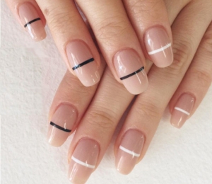 O manichiură minimalistă surprinde prin simplitatea sa aşa că trebuie să te bazezi pe regula de bază "less is more". Dacă eşti adepta nuanţelor nude, poţi opta pentru o manichiură nude cu un punct sau o dungă în altă culoare.
