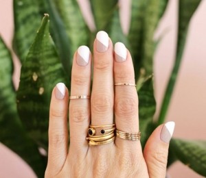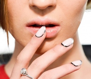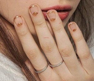 Unghiile nude sunt discrete, însă au acel ceva care le face să fie "wow". Ei bine, în această primăvară unghiile nude beneficiază de un upgrade, banda metalică fiind elementul care le scoate din anonimat. Fie că este argintie, fie că este aurie, aceasta se aplică atât pe mijlocul unghiei, cât şi în vârful acesteia.