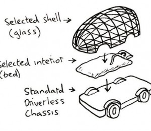 Artistul Dominic Wilcox si-a imaginat cum ar arata masinile in 2059. Asadar, acestea ar fi fara soferi, in ea va incapea un singur pasager, care se va relaxa pe un pat confortabil.