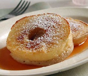 Se curata merele si se taie in jumatate. Se unge o tava cu margarina apoi se pun merele la copt. Separat se amesteca sucul de mere, zaharul si scorisoara. Se toarna peste mere si se lasa la cuptor 15-20 min. Se scot pe o farfurie si se presara cu nuci. Se lasa la rece.