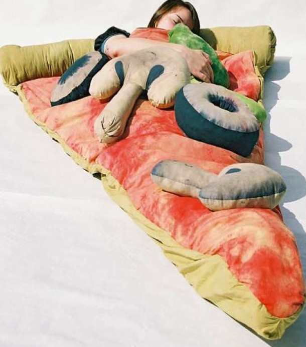 Foloseste un sac de dormit in forma de felie de pizza si tot campingul te va admira!