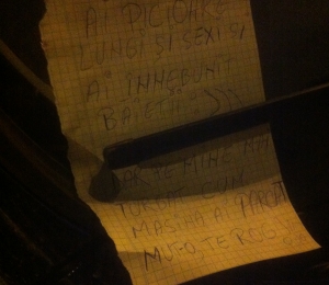 Constatând că vecina de bloc şi-a parcat maşina pe locul său de parcare, un bărbat cu simţul umorului foarte dezvoltat i-a lăsat, în parbriz, un bileţel cu următorul mesaj: "Ai picioare lungi şi sexi şi ai înnebunit băieţii, dar pe mine m-ai turbat, cum maşina ai parcat. Mut-o, te rog!!!".