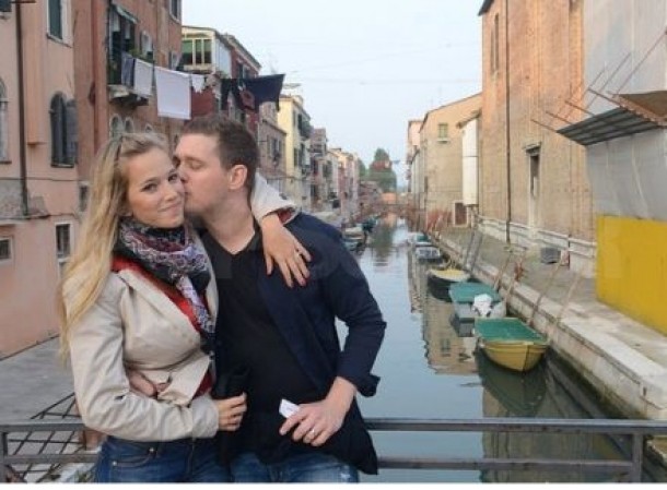 Michael si Luisana au zambit prietenos fotografilor, in timp ce s-au plimbat cu condola in Venetia.