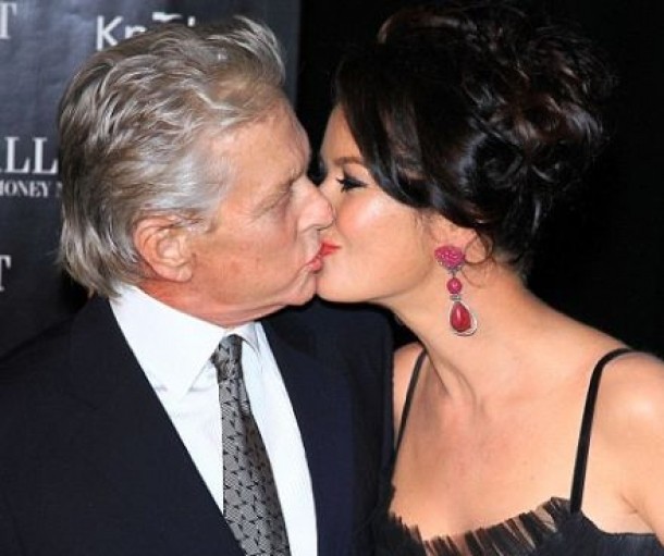 Michael Douglas si-a sarutat sotia, Catherine Zeta Jones, cu multa pasiune in fata fotografilor.
