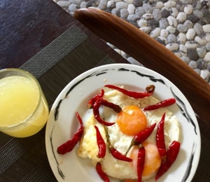 Ieri, Mihaela Rădulescu publica pe pagina ei oficială de Facebook 2 fotografii noi. În una dintre ele, apare o farfurie cu câteva ouă ochiuri peste care vedeta a pus mai mulţi ardei iuţi, de aici şi ideea sa de dietă HOT.