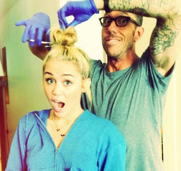 Miley a postat initial pe contul personal de Twitter o fotografie in care apare alaturi de stilistul personal, cu