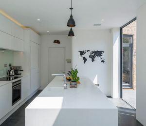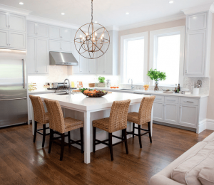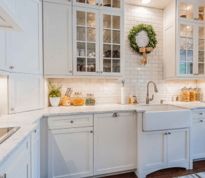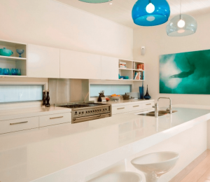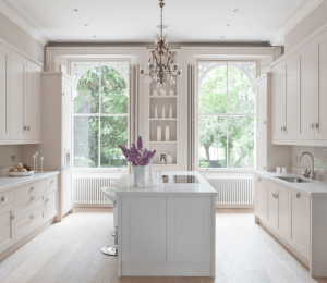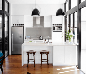 Mai mult decât atât, albul poate face o bucătărie mică să pară mai mare sau poate lumina o cameră care duce lipsă de lumină naturală. Dacă vrei să optezi pentru un mobilier alb de bucătărie, ar fi indicat să te gândeşti şi la câteva accente de culoare, cum ar fi mânerele de la dulapuri sau corpurile de iluminat.
