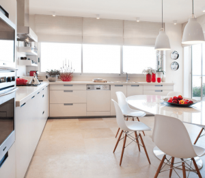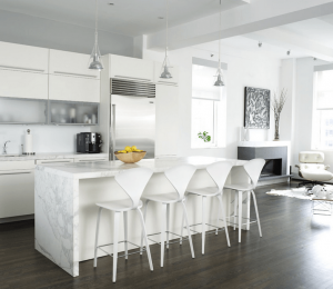 Potrivit Asociaţiei Naţionale a Bucătăriilor şi Băilor, albul simplifică procesul de design prin crearea unei încăperi care emană prospeţime, lumină şi în acelaşi timp puritate şi echilibru.