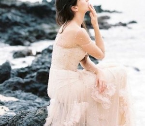 Bijuteriile cu perle completeaza perfect o astfel de rochie de mireasa, la fel si coafurile romantice, relaxate si infrumusetate cu flori.