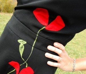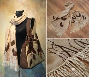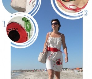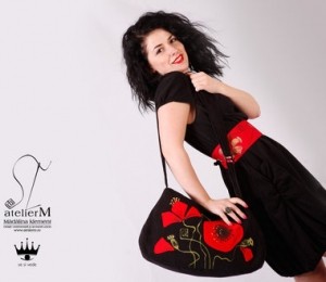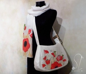 Lucrez cu materiale textile pe care le transform si le décorez prin diverse tehnici de colaj, vopsire sau pictura (cu vopseluri textile rezistente la spalat). Din materiale (care in general sunt naturale, in, bumbac, vascoza) se nasc posete, rochii, esarfe, obiecte decorative (de la lenjerii de pat pana la huse pentru tabureti), palarii, brauri, ii pictate si cam tot ce are nevoie o fata pentru a se simti diafana si unica.