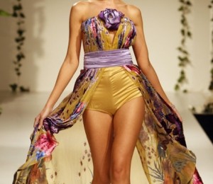 "Am transpus propria mea reprezentare asupra a Eden-ului, ca si concept si m-am "jucat" cu elemente simbolice din natura: imprimeuri florale, animal printuri si degradeuri de apa si am unit totul intr-o colectie complexa si variata. ", a declarat Cosmian Englizian.