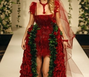 Piesele de rezistenta ale colectiei sunt rochiile cu trandafiri tridimensionali, facuti din pene, mireasa colectiei avand in jur de 700 de trandafiri rosii incorporati.