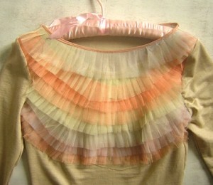 Cream obiecte unicat sau serie mica. Hainele noastre sunt din materiale naturale (bumbac, jerseuri din bumbac), tul in nuante delicate, cu volane si perle. Pentru bijuterii materialul preferat este portelanul decorat cu aur. Accesoriile - gentile - se incadreaza, ca si hainele si mobila,  in zona romantic-chic.