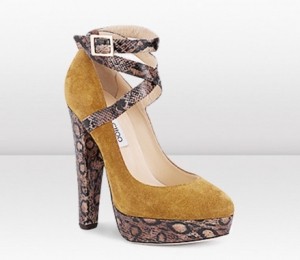 Jimmy Choo prezinta colectia pentru toamna-iarna ’11-’12 ca o oda a vibratiei anilor ’70, cu texturi exotice si versatile. O cromatica in care regasim gri, antracit, mov, bej, alb, verde si negru. Inspiratia designerului a fost Catherine Deneuve, Charlotte Rampling si Veruschka, care erau cunoscute pentru opulenta si rafinament.