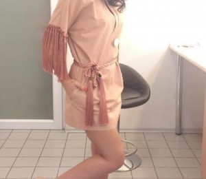 Astfel, Adelina Pestritu a jucat rolul unui martisor si a imbracat o rochie inedita, cu maneci scurte si franjuri, legata in talie cu un snur asortat.