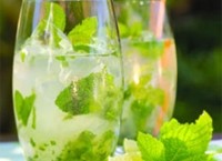 20 cuburi gheață, 180 ml rom, 12 frunze mentă, 6 linguri zeamă de lime, 4 linguri zahăr, 600 ml Sprite, 4 felii lime