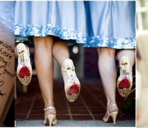 La biserică, înaintea slujbei, domnişoarele de onoare ar trebui să scrie, cu acelaşi pix, propriul nume pe talpa pantofilor miresei. Apoi, dimineaţa, după aruncarea buchetului, mireasa poate arăta invitaţilor tălpile pantofilor, pentru a afla care dintre domnişoare se va mărita prima. Se spune că numele care se şterge în timpul nunţii este al celei care se mărită prima.