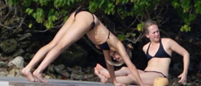 Cameron Diaz a fost fotografiata de paparazzi in timp ce facea yoga in costum de baie.