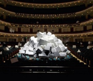 In interior sau ca arhitectura, dantela construieste piese geometrice din materiale neconventionale, cu care publicul interactioneaza.