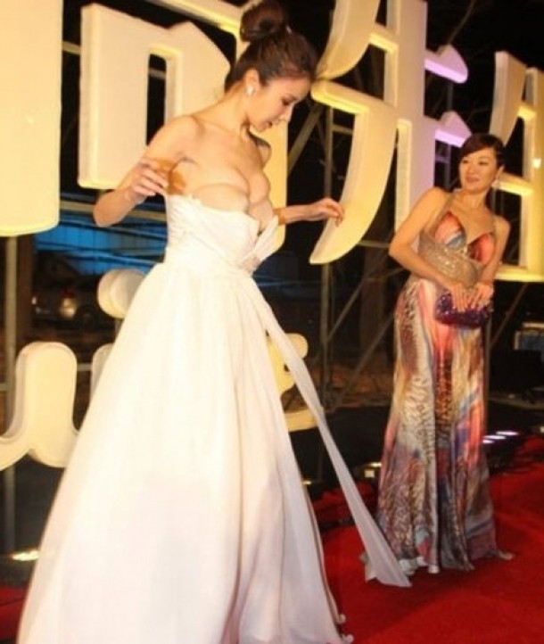 Foto 2 din " Accident stanjenitor pe covorul rosu - Vezi cum a ramas o actrita in sutien "