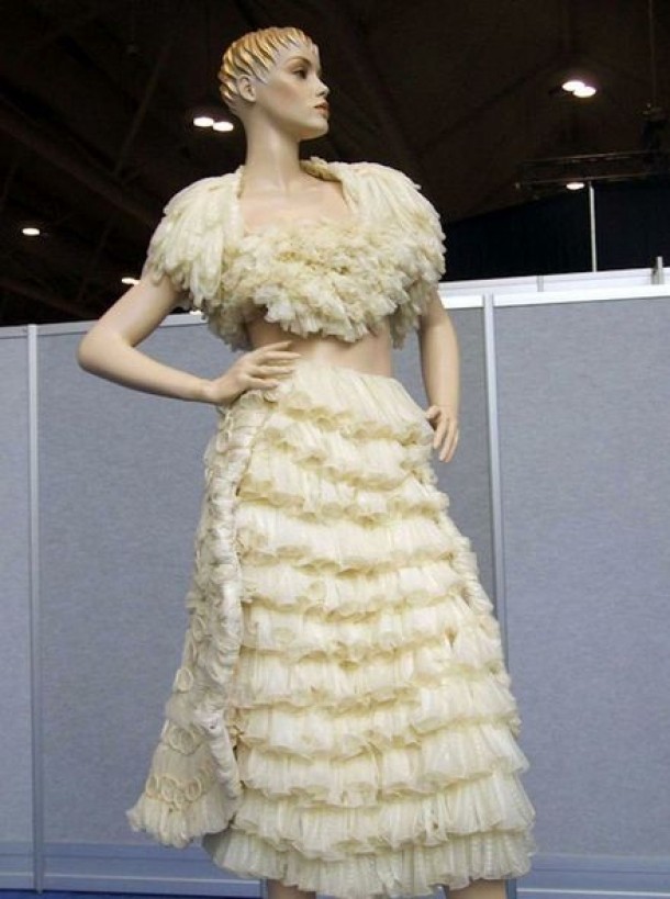 Foto 8 din " FOTO: Rochii, coliere si peruci din PREZERVATIVE - Ai purta? "