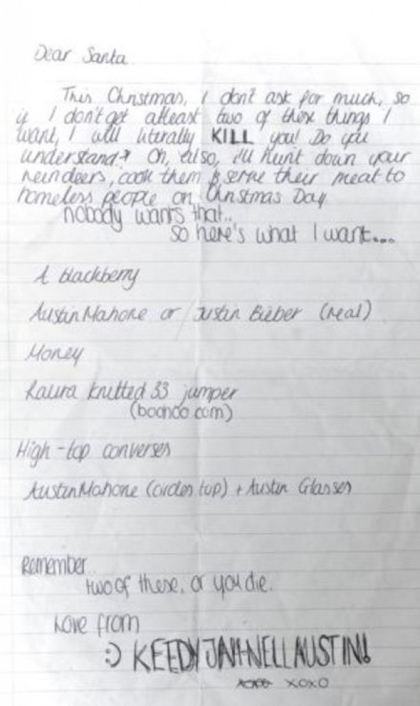 Foto 1 din " Scrisoarea de amenintare a unei fetite pentru Mos Craciun: "Mosul va muri si ii voi gati renii" "