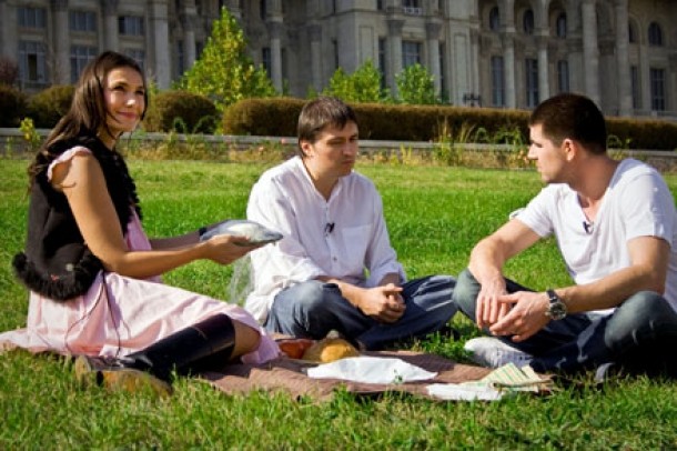 Pentru a da un exemplu si a-i incuraja pe bucuresteni sa profite de libertatea recent castigata de a sta pe iarba in parcuri, prezentatorii l-au invitat pe Cristian Mungiu la un picnic pe peluza Casei Poporului.