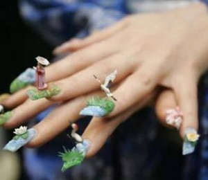 Modele de flori, frunze, gargarite, fluturi, fructe… ti se par too much! Crede-ma ca sunt atat de chic. Numai ideea de a reinvia natura intr-un sezon bacovian cu ajutorul pensulelor mici transforma un look minimalist in ceva spectaculos.